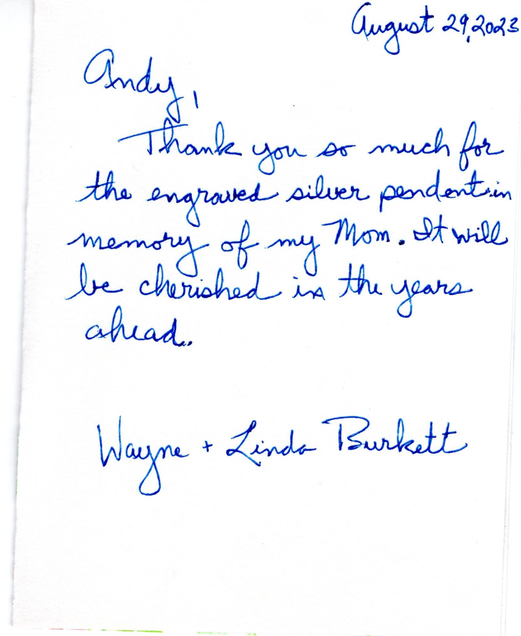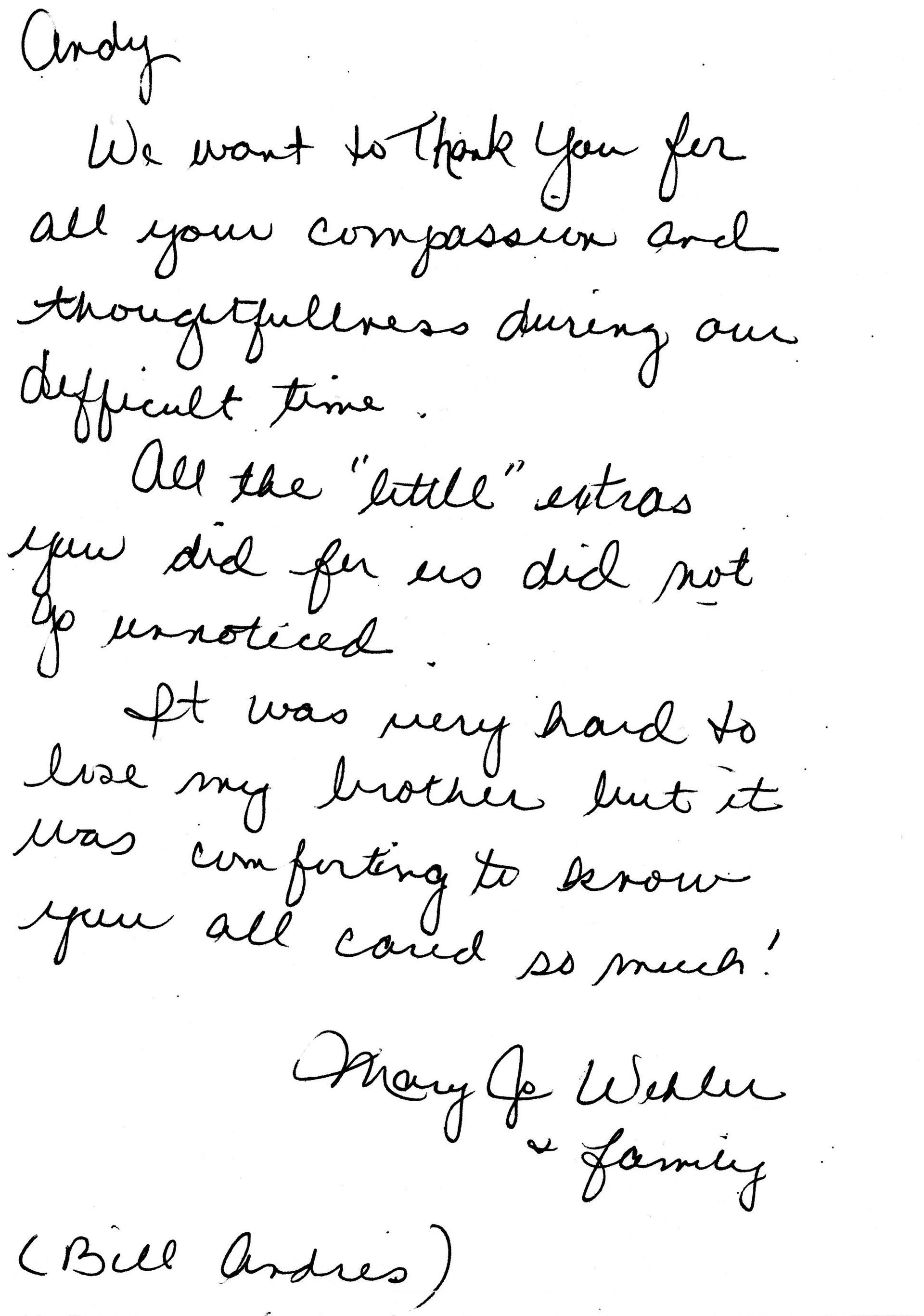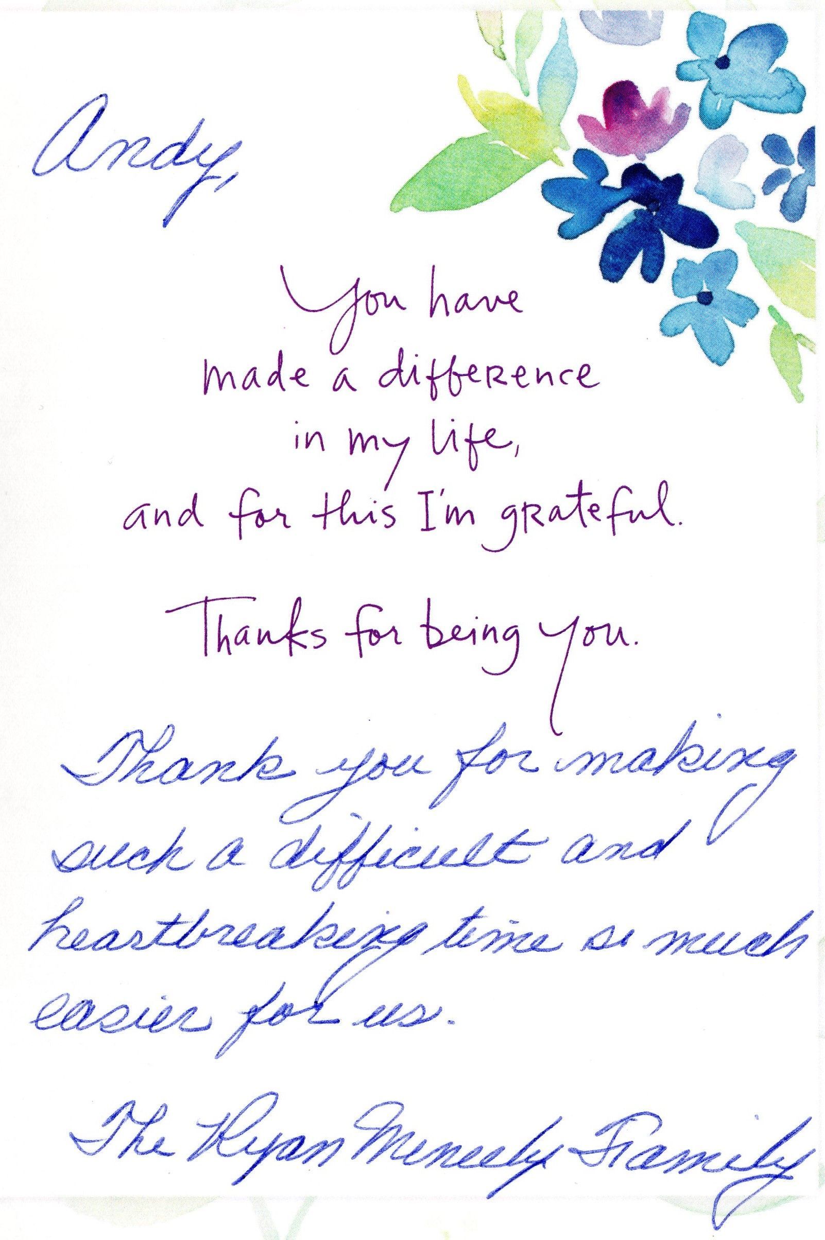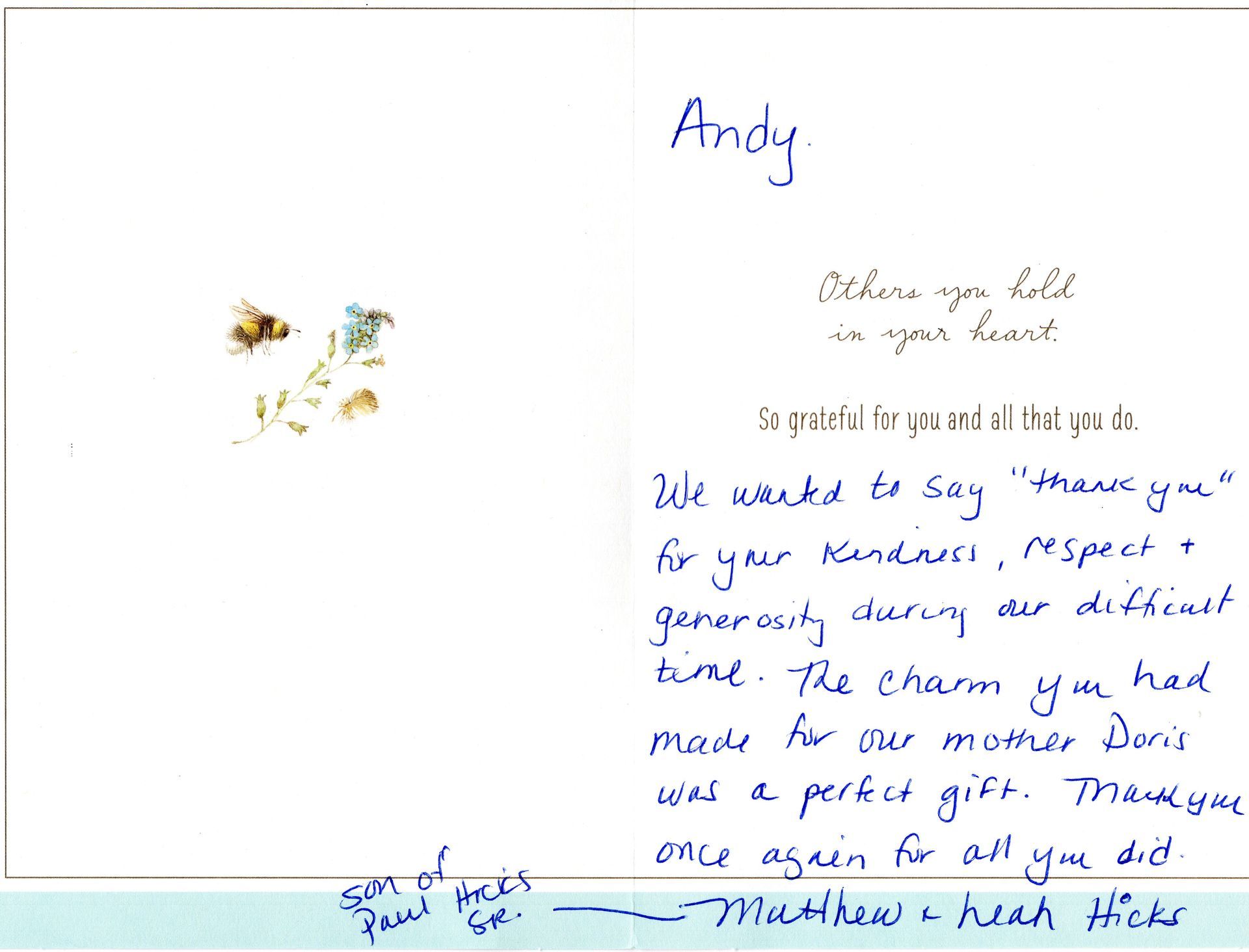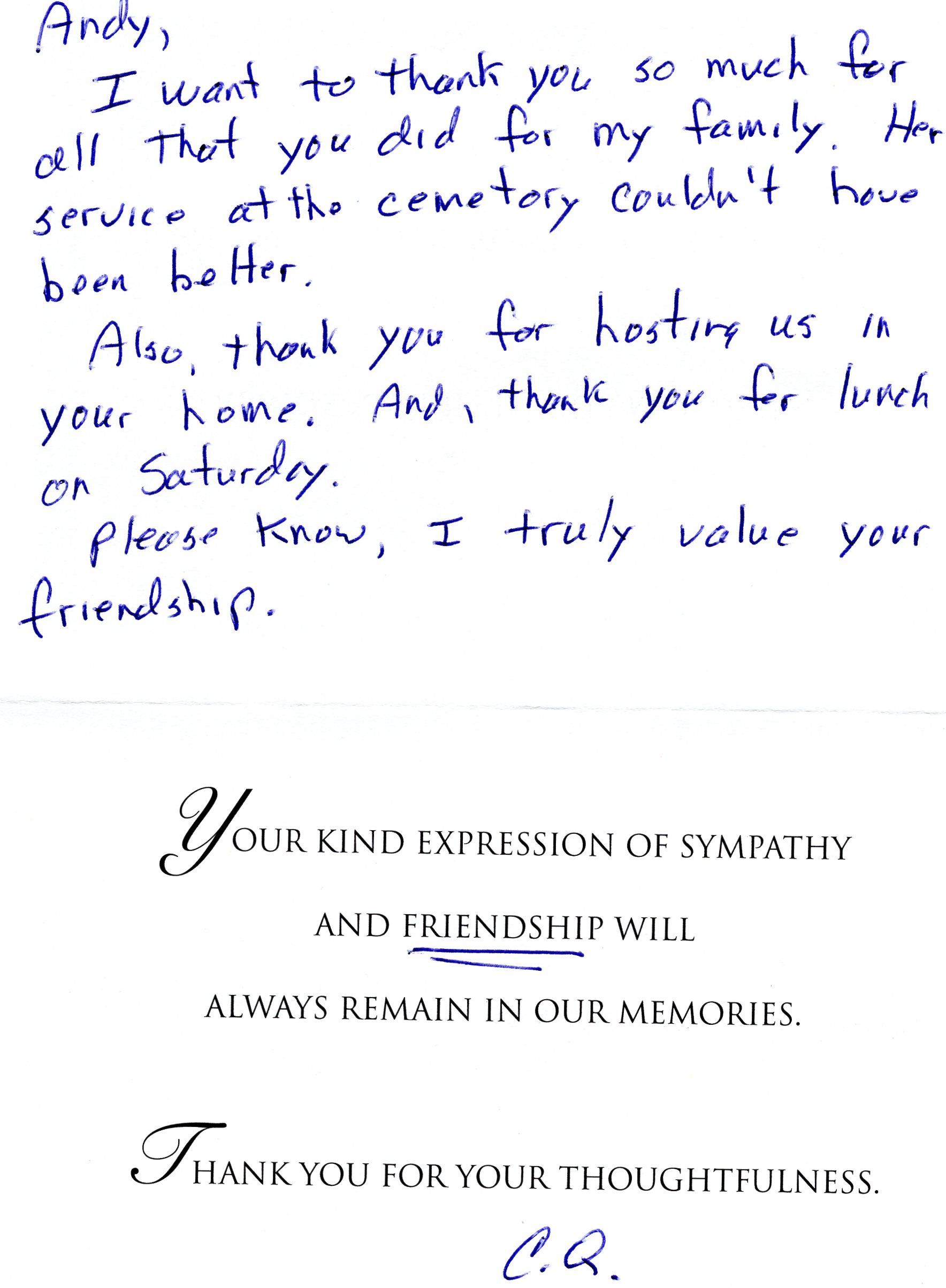 It is our greatest pleasure to hear from families we've served after the service is over. We receive many letters, cards and emails thanking us for our care and attention during their time of need and those words warm our hearts and affirm that we are truly here to serve.