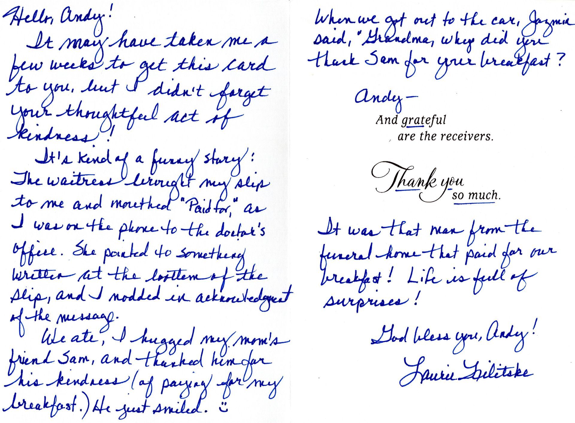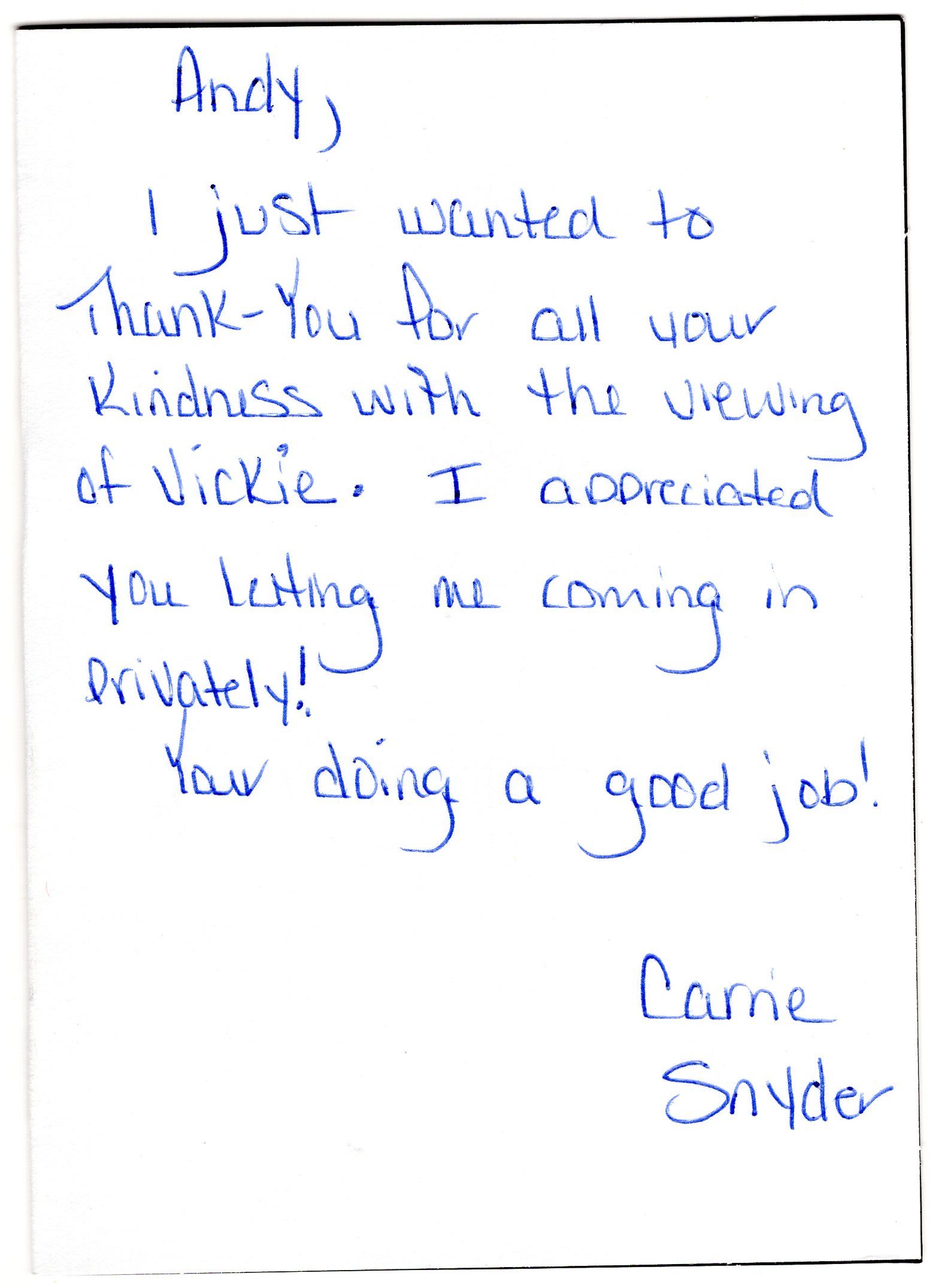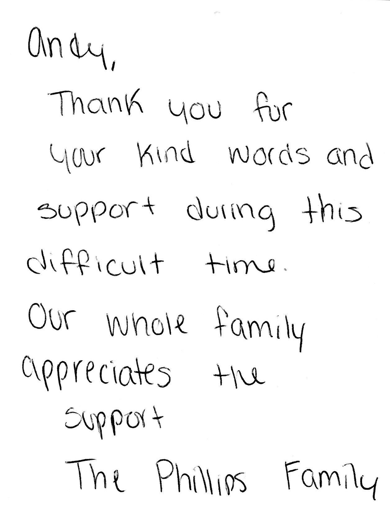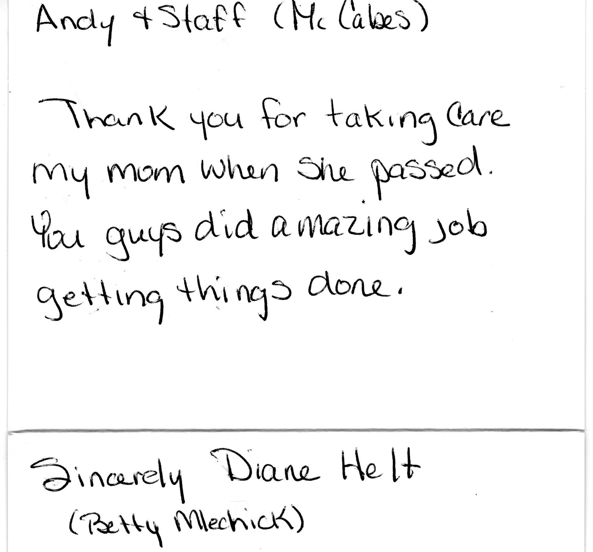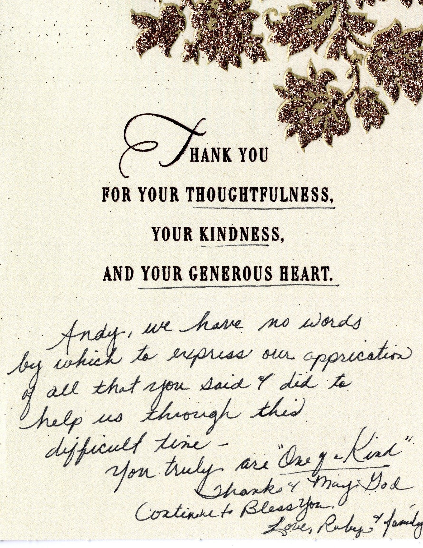It is our greatest pleasure to hear from families we've served after the service is over. We receive many letters, cards and emails thanking us for our care and attention during their time of need and those words warm our hearts and affirm that we are truly here to serve.